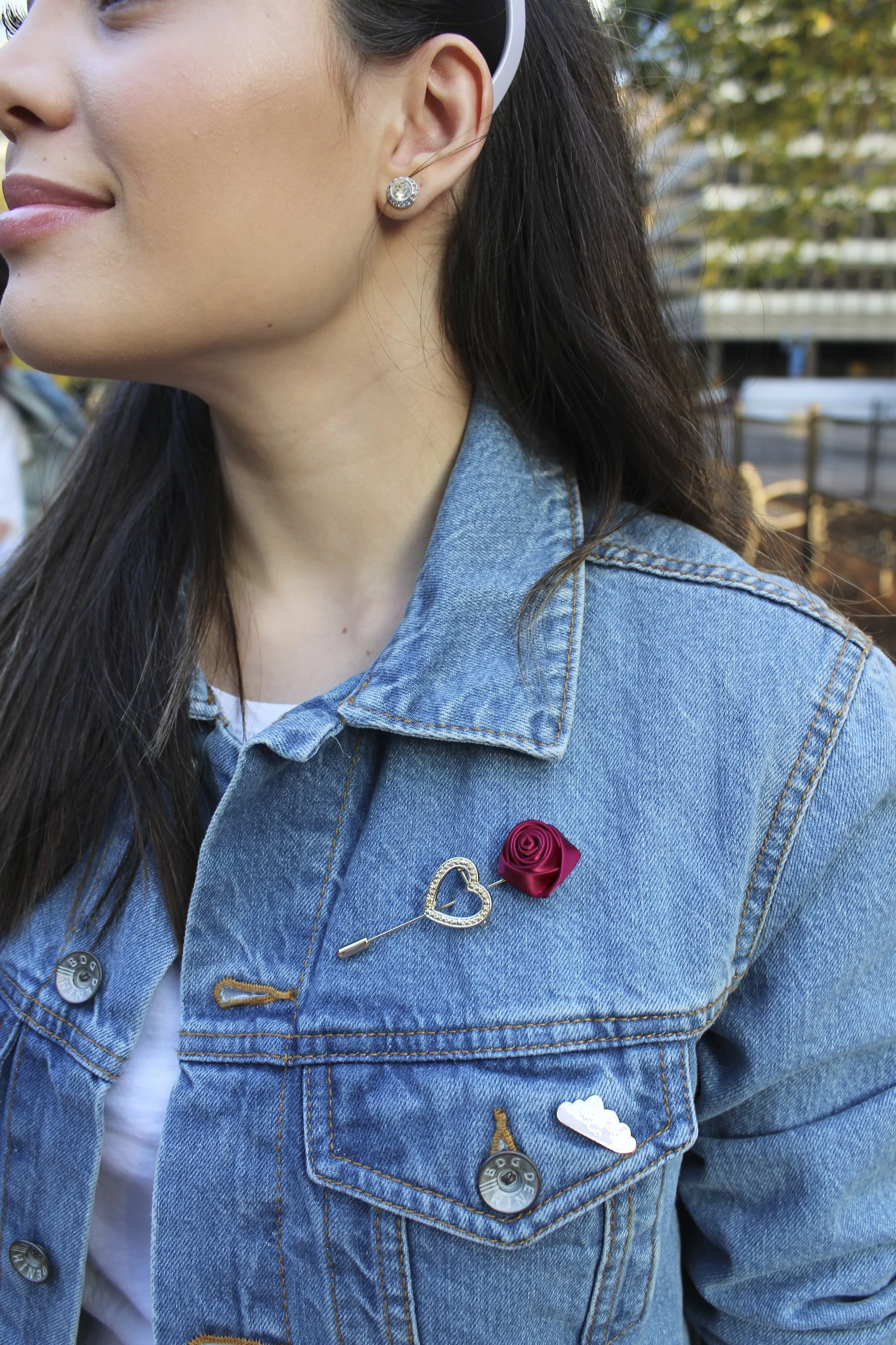 Jacket: Urban Outfitters || Shirt: H&M || Pants: Lulus || Shoes: Charles David || Bag: Zara (old. Similar here) || Sunglasses: Le Specs || Pins: Rose, cloud ||